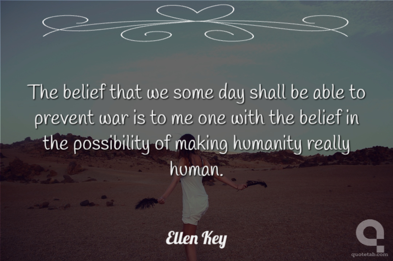 The belief that we some day shall be able to prevent war is to me one with the belief in the possibility of making humanity really human.