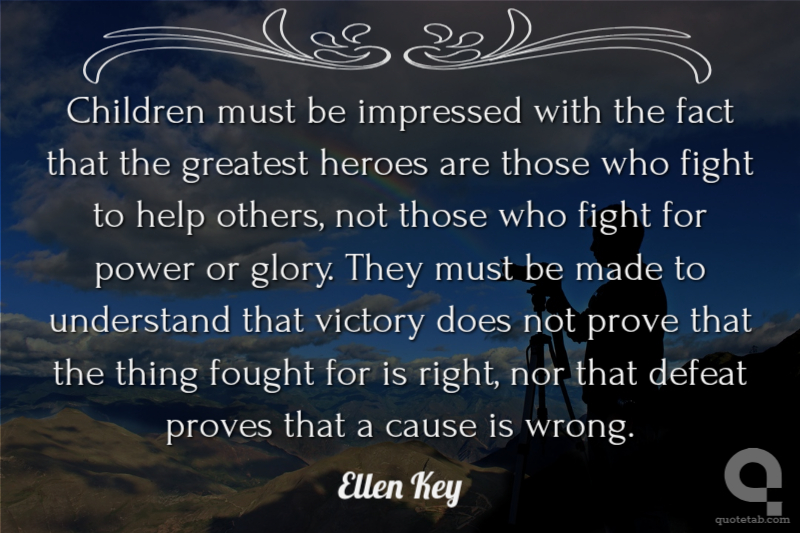 Children must be impressed with the fact that the greatest heroes are those who fight to help others, not those who fight for power or glory. They must be made to understand that victory does not prove that the thing fought for is right, nor that defeat proves that a cause is wrong.