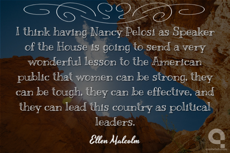 I think having Nancy Pelosi as Speaker of the House is going to send a very wonderful lesson to the American public that women can be strong, they can be tough, they can be effective, and they can lead this country as political leaders.