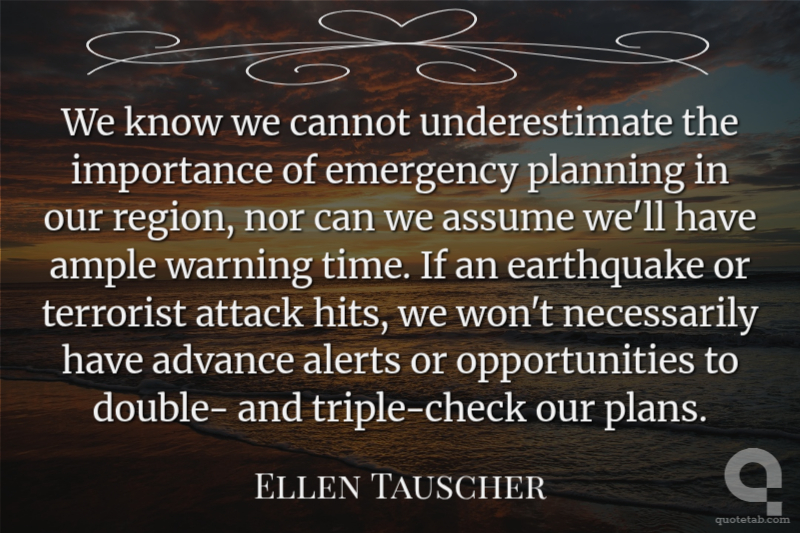 We know we cannot underestimate the importance of emergency planning in our region, nor can we assume we'll have ample warning time. If an earthquake or terrorist attack hits, we won't necessarily have advance alerts or opportunities to double- and triple-check our plans.