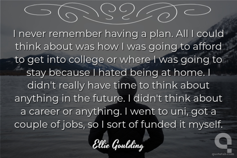 I never remember having a plan. All I could think about was how I was going to afford to get into college or where I was going to stay because I hated being at home. I didn't really have time to think about anything in the future. I didn't think about a career or anything. I went to uni, got a couple of jobs, so I sort of funded it myself.