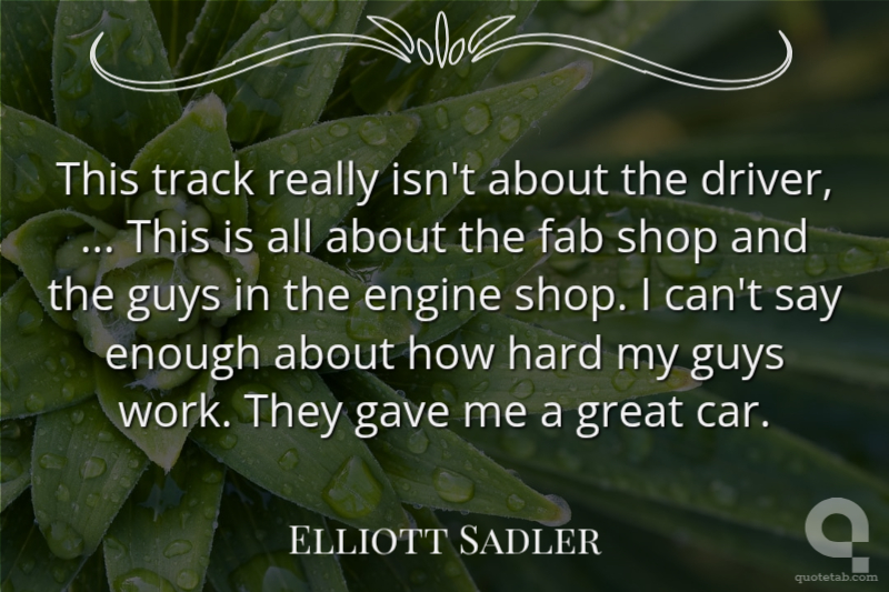 This track really isn't about the driver, ... This is all about the fab shop and the guys in the engine shop. I can't say enough about how hard my guys work. They gave me a great car.