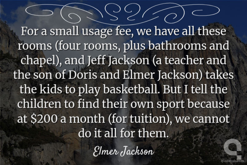 For a small usage fee, we have all these rooms (four rooms, plus bathrooms and chapel), and Jeff Jackson (a teacher and the son of Doris and Elmer Jackson) takes the kids to play basketball. But I tell the children to find their own sport because at $200 a month (for tuition), we cannot do it all for them.