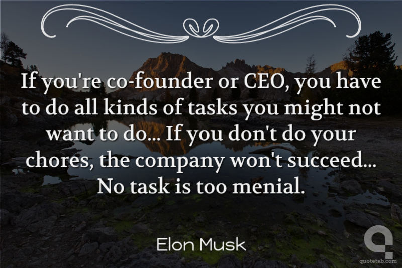 If you're co-founder or CEO, you have to do all kinds of tasks you might not want to do... If you don't do your chores, the company won't succeed... No task is too menial.