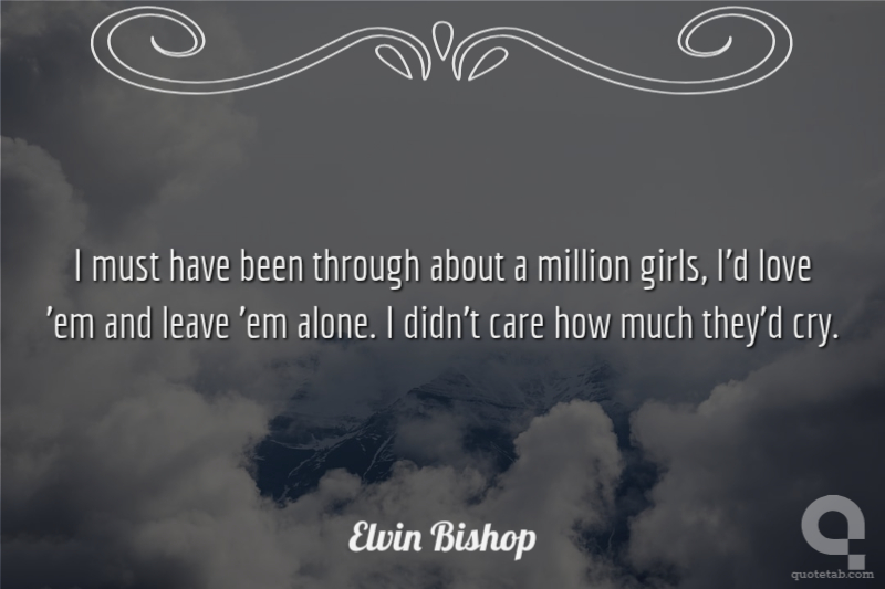 I must have been through about a million girls, I'd love 'em and leave 'em alone. I didn't care how much they'd cry.
