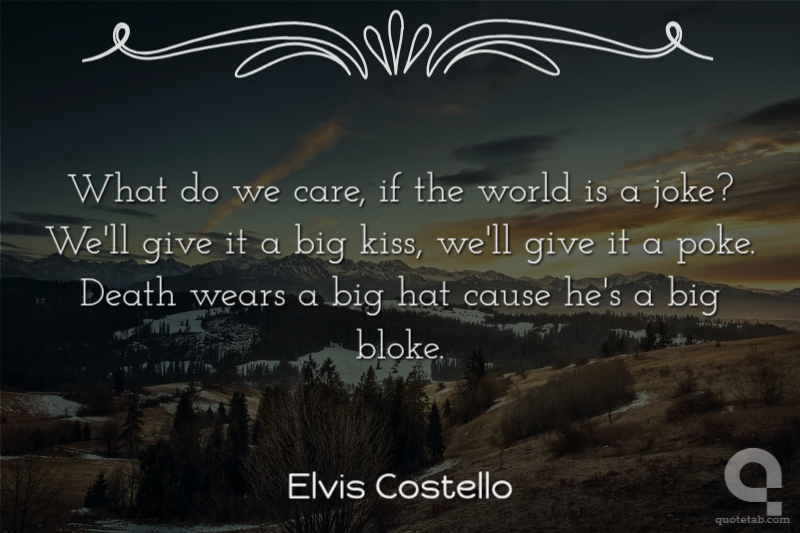 What do we care, if the world is a joke? We'll give it a big kiss, we'll give it a poke. Death wears a big hat cause he's a big bloke.