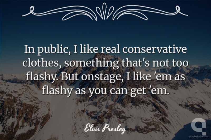 In public, I like real conservative clothes, something that's not too flashy. But onstage, I like 'em as flashy as you can get 'em.