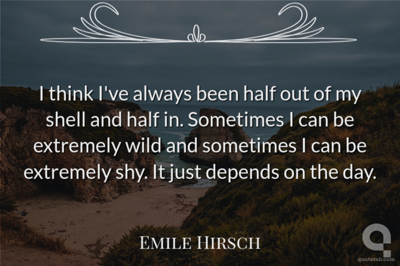 I think I've always been half out of my shell and half in. Sometimes I can be extremely wild and sometimes I can be extremely shy. It just depends on the day.