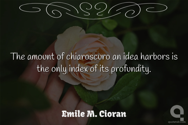 The amount of chiaroscuro an idea harbors is the only index of its profundity.