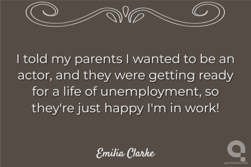 I told my parents I wanted to be an actor, and they were getting ready for a life of unemployment, so they're just happy I'm in work!