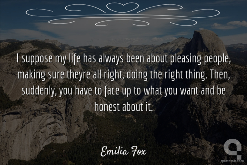 I suppose my life has always been about pleasing people, making sure theyre all right, doing the right thing. Then, suddenly, you have to face up to what you want and be honest about it.