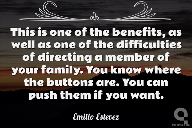 This is one of the benefits, as well as one of the difficulties of directing a member of your family. You know where the buttons are. You can push them if you want.