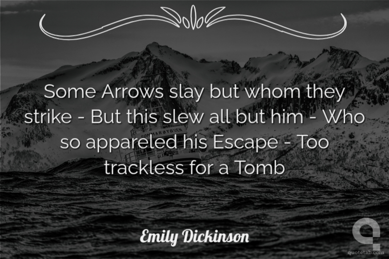 Some Arrows slay but whom they strike - But this slew all but him - Who so appareled his Escape - Too trackless for a Tomb