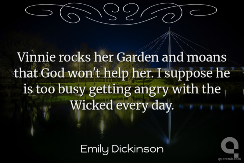 Vinnie rocks her Garden and moans that God won't help her. I suppose he is too busy getting angry with the Wicked every day.