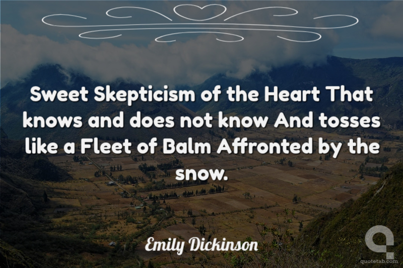 Sweet Skepticism of the Heart That knows and does not know And tosses like a Fleet of Balm Affronted by the snow.