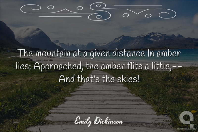 The mountain at a given distance In amber lies; Approached, the amber flits a little,-- And that's the skies!