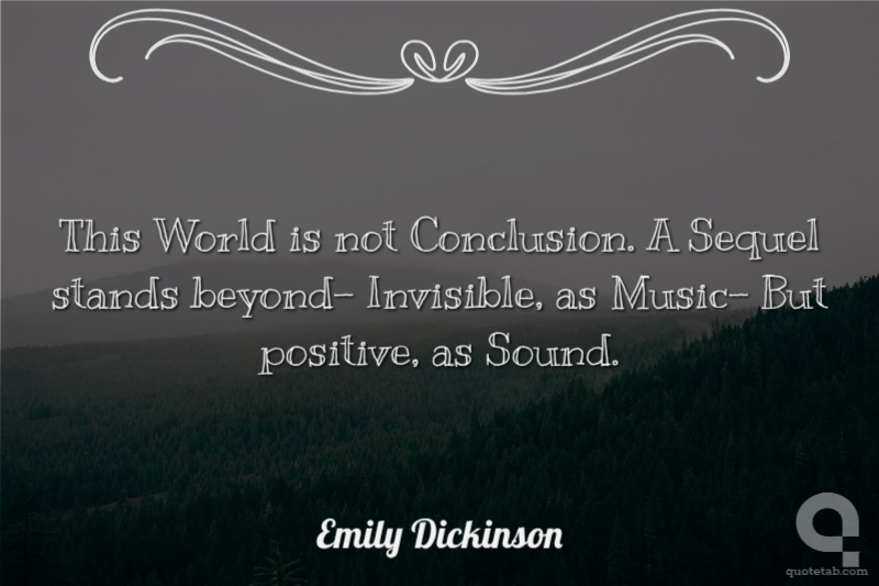 This World is not Conclusion./ A Sequel stands beyond--/ Invisible, as Music--/ But positive, as Sound.