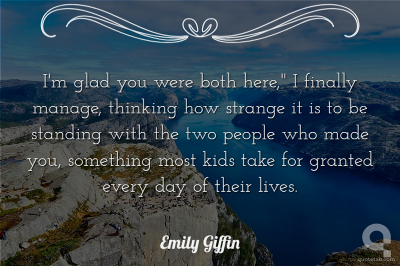 I'm glad you were both here," I finally manage, thinking how strange it is to be standing with the two people who made you, something most kids take for granted every day of their lives.