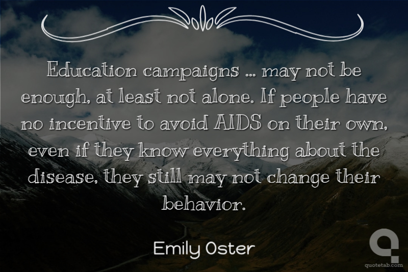 Education campaigns ... may not be enough, at least not alone. If people have no incentive to avoid AIDS on their own, even if they know everything about the disease, they still may not change their behavior.