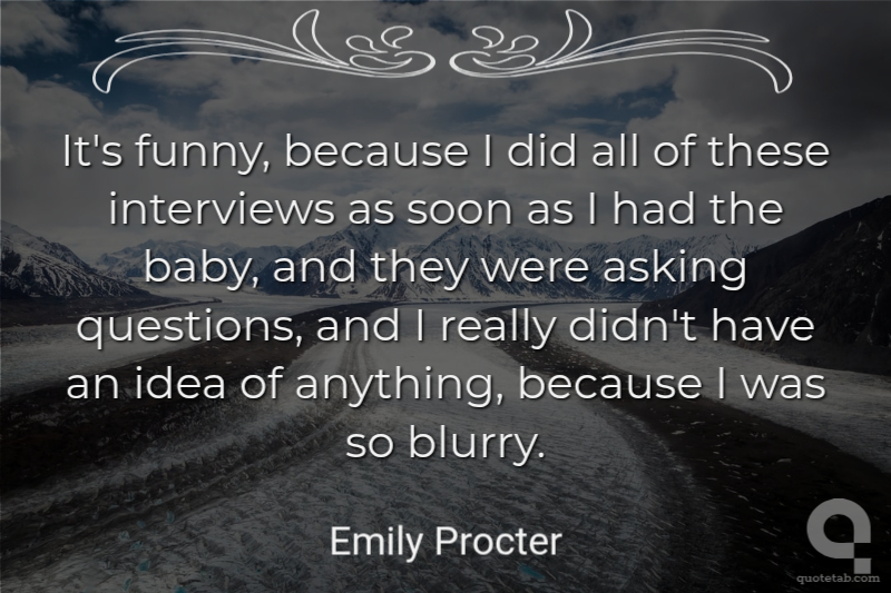 It's funny, because I did all of these interviews as soon as I had the baby, and they were asking questions, and I really didn't have an idea of anything, because I was so blurry.
