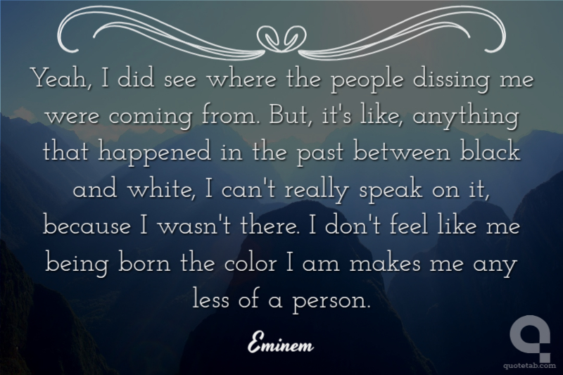 Yeah, I did see where the people dissing me were coming from. But, it's like, anything that happened in the past between black and white, I can't really speak on it, because I wasn't there. I don't feel like me being born the color I am makes me any less of a person.
