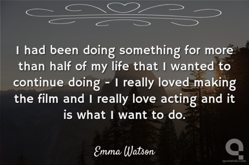 I had been doing something for more than half of my life that I wanted to continue doing - I really loved making the film and I really love acting and it is what I want to do.