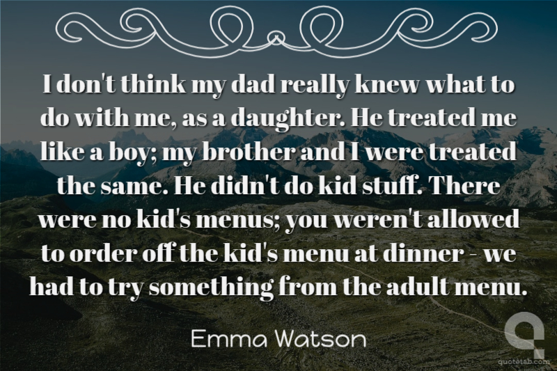 I don't think my dad really knew what to do with me, as a daughter. He treated me like a boy; my brother and I were treated the same. He didn't do kid stuff. There were no kid's menus; you weren't allowed to order off the kid's menu at dinner - we had to try something from the adult menu.
