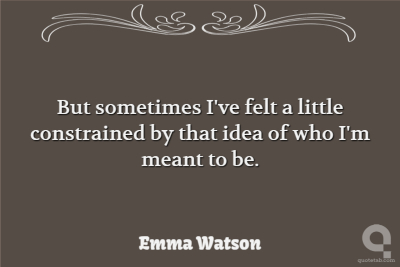 But sometimes I've felt a little constrained by that idea of who I'm meant to be.