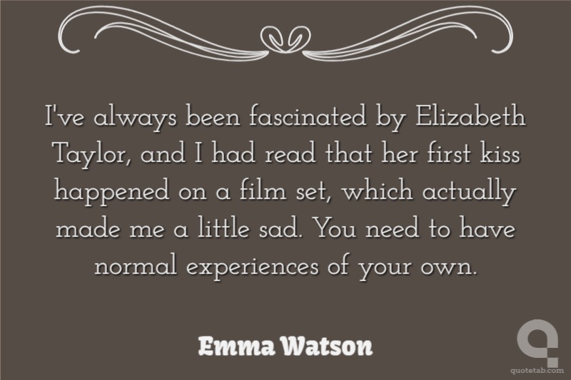 I've always been fascinated by Elizabeth Taylor, and I had read that her first kiss happened on a film set, which actually made me a little sad. You need to have normal experiences of your own.