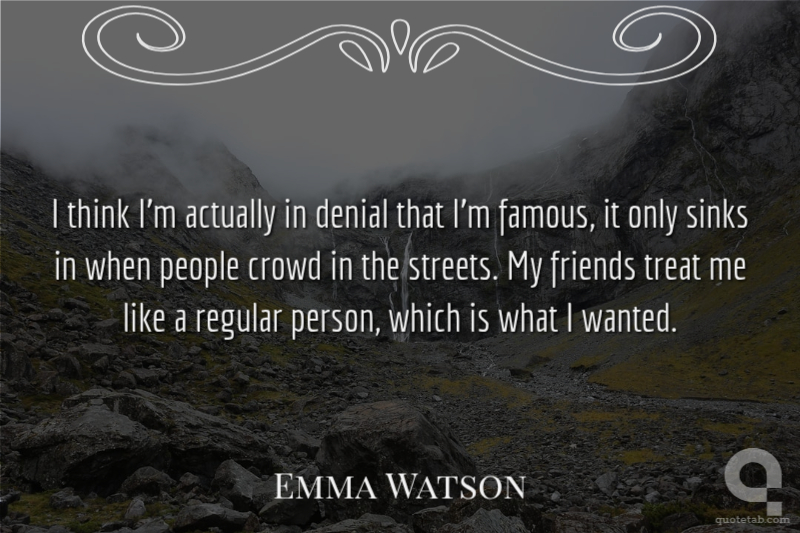 I think I'm actually in denial that I'm famous, it only sinks in when people crowd in the streets. My friends treat me like a regular person, which is what I wanted.