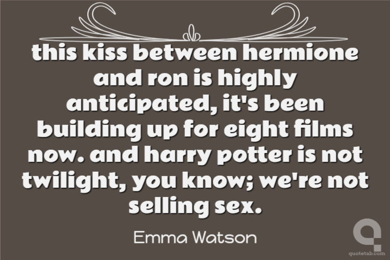 this kiss between hermione and ron is highly anticipated, it's been building up for eight films now. and harry potter is not twilight, you know; we're not selling sex.