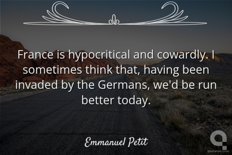 France is hypocritical and cowardly. I sometimes think that, having been invaded by the Germans, we'd be run better today.