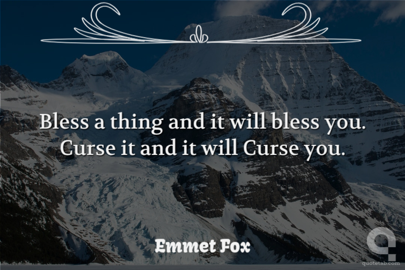 Bless a thing and it will bless you. Curse it and it will Curse you.