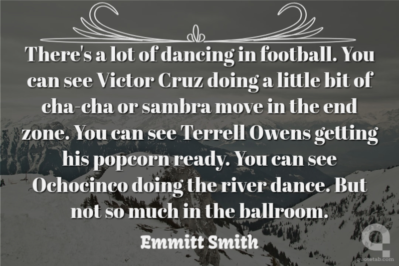 There's a lot of dancing in football. You can see Victor Cruz doing a little bit of cha-cha or sambra move in the end zone. You can see Terrell Owens getting his popcorn ready. You can see Ochocinco doing the river dance. But not so much in the ballroom.