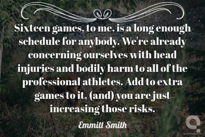 Sixteen games, to me, is a long enough schedule for anybody. We're already concerning ourselves with head injuries and bodily harm to all of the professional athletes. Add to extra games to it, (and) you are just increasing those risks.