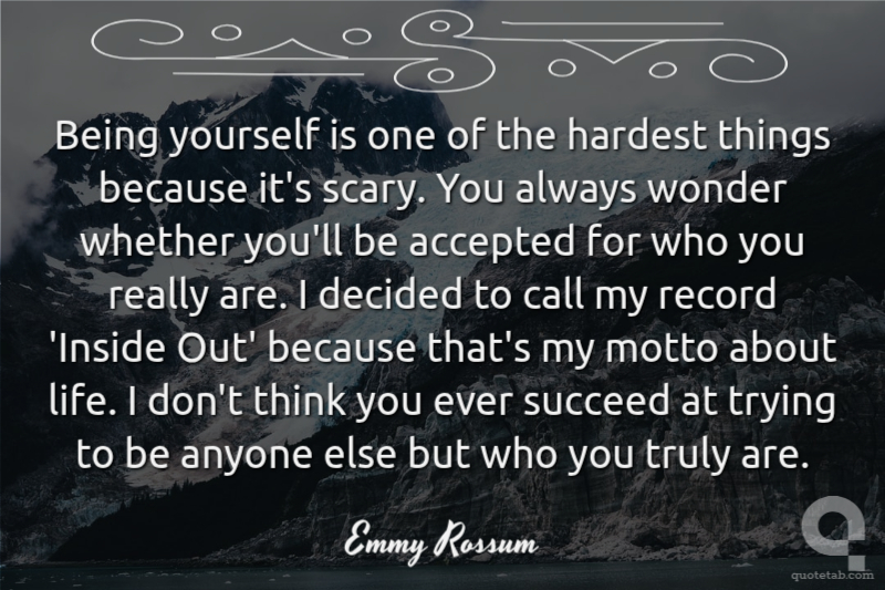 Being yourself is one of the hardest things because it's scary. You always wonder whether you'll be accepted for who you really are. I decided to call my record 'Inside Out' because that's my motto about life. I don't think you ever succeed at trying to be anyone else but who you truly are.