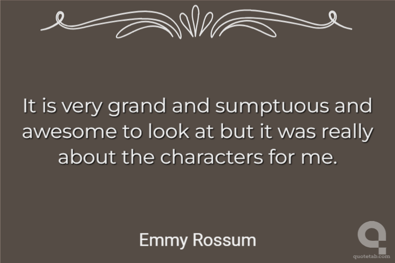 It is very grand and sumptuous and awesome to look at but it was really about the characters for me.