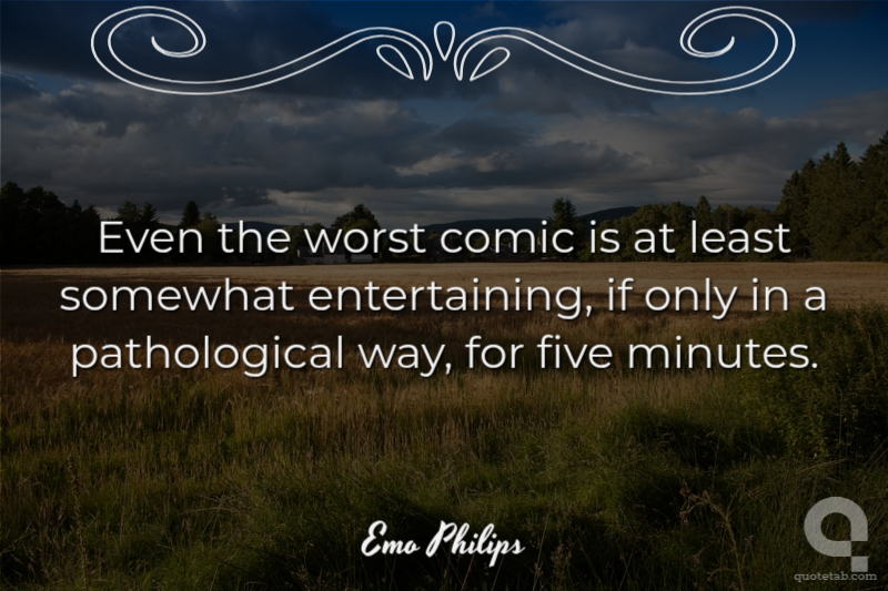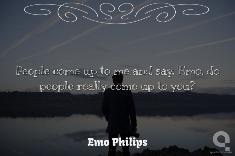 Emo Philipsis an American entertainer and comedian born in the Chicago suburb of Downers Grove. Much of his standup comedy stems from the use of paraprosdokians spoken in a wandering falsetto tone of voice and a confused, childlike delivery of his material to produce the intended comic timing in a manner invoking the 'wisdom of children' or the idiot savant...