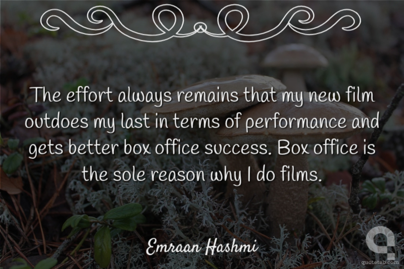 The effort always remains that my new film outdoes my last in terms of performance and gets better box office success. Box office is the sole reason why I do films.