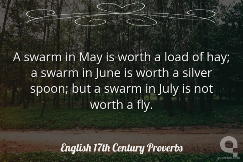 A swarm in May is worth a load of hay; a swarm in June is worth a silver spoon; but a swarm in July is not worth a fly.
