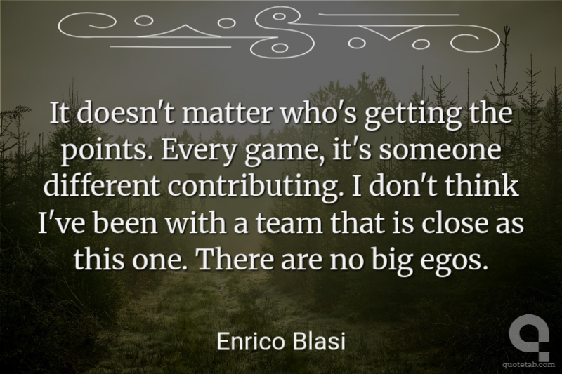 It doesn't matter who's getting the points. Every game, it's someone different contributing. I don't think I've been with a team that is close as this one. There are no big egos.