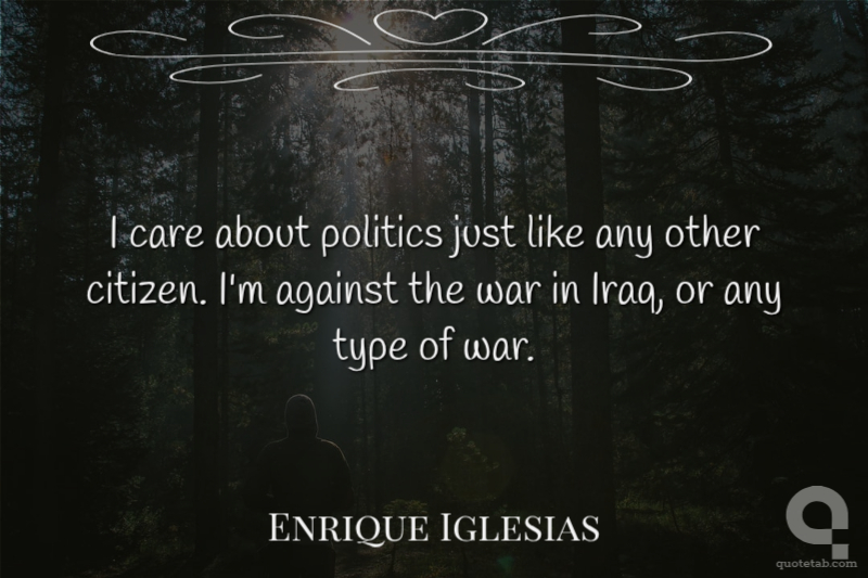 I care about politics just like any other citizen. I'm against the war in Iraq, or any type of war.