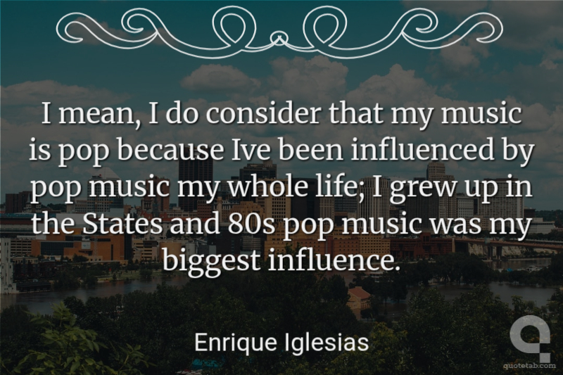 I mean, I do consider that my music is pop because Ive been influenced by pop music my whole life; I grew up in the States and 80s pop music was my biggest influence.