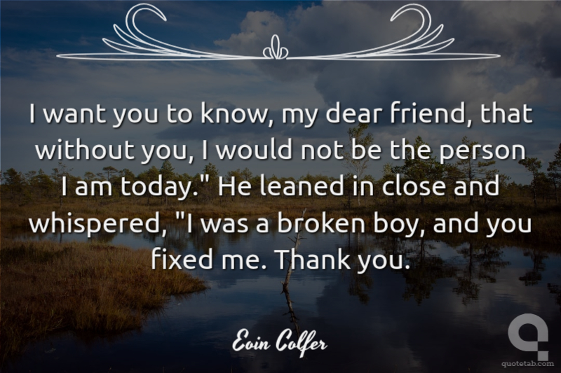 I want you to know, my dear friend, that without you, I would not be the person I am today." He leaned in close and whispered, "I was a broken boy, and you fixed me. Thank you.