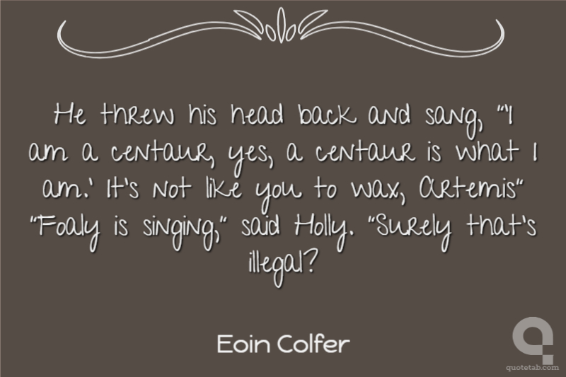 He threw his head back and sang, "'I am a centaur, yes, a centaur is what I am.' It's not like you to wax, Artemis" "Foaly is singing," said Holly. "Surely that's illegal?