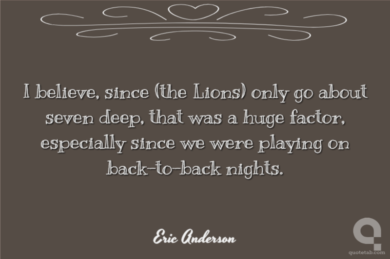 I believe, since (the Lions) only go about seven deep, that was a huge factor, especially since we were playing on back-to-back nights.