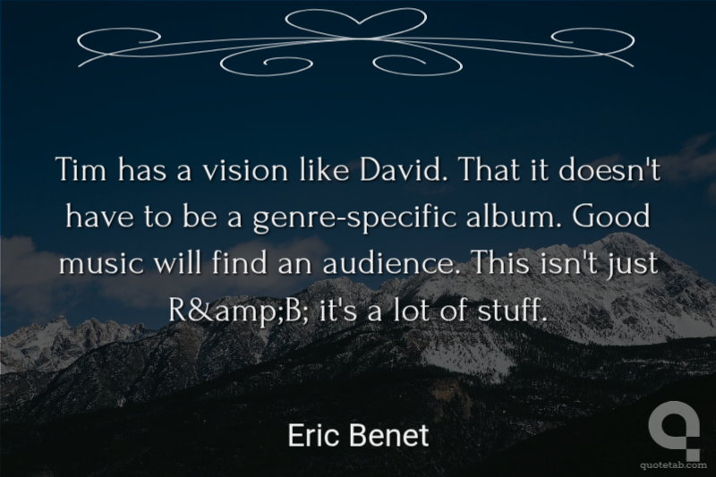 Tim has a vision like David. That it doesn't have to be a genre-specific album. Good music will find an audience. This isn't just R&B; it's a lot of stuff.