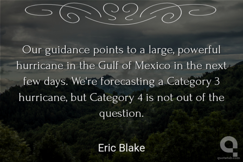 Our guidance points to a large, powerful hurricane in the Gulf of Mexico in the next few days. We're forecasting a Category 3 hurricane, but Category 4 is not out of the question.
