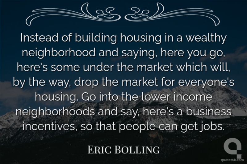 Instead of building housing in a wealthy neighborhood and saying, here you go, here's some under the market which will, by the way, drop the market for everyone's housing. Go into the lower income neighborhoods and say, here's a business incentives, so that people can get jobs.
