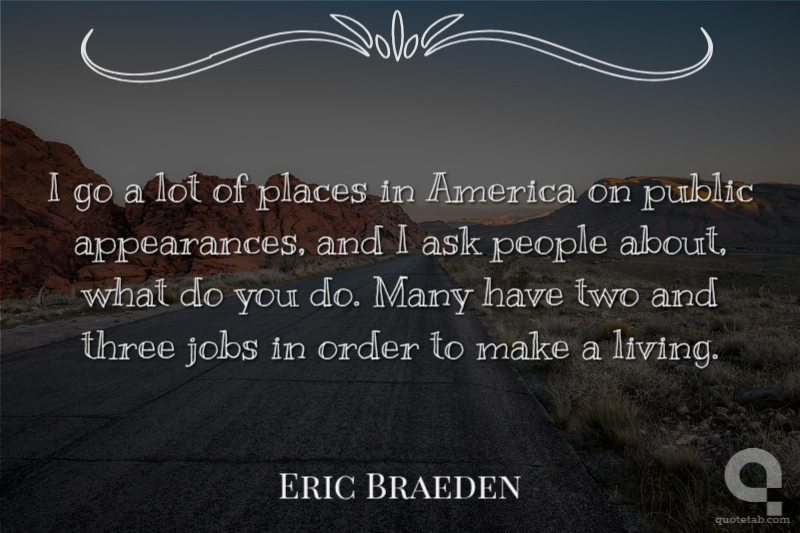 I go a lot of places in America on public appearances, and I ask people about, what do you do. Many have two and three jobs in order to make a living.
